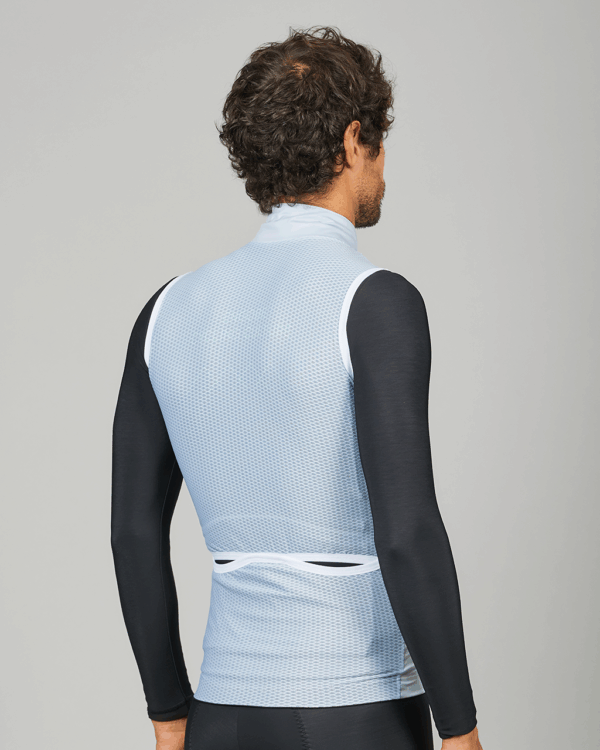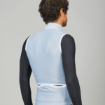 El chaleco combina un tejido de membrana en la parte frontal para evitar el paso de aire y el frio, con un tejido superventilado en la parte trasera para facilitar la expulsión del sudor y mantenernos siempre secos.